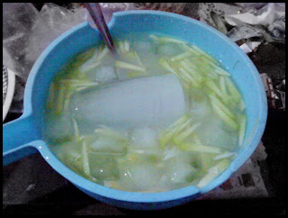 Beberapa hari kemudian, kami mencoba untuk yang kedua kalinya. Kali ini banyak bahan yang tidak tersedia. Yaitu, sirup leci, jeruk nipis, dan selasih. Apalagi tidak ada serutan untuk melonnya, alhasil saya cacah saja deh. Hihihi... But, the show must go on...